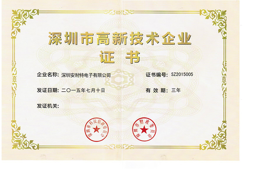 榮譽(yù)證書(shū):深圳市高新技術(shù)企業(yè)證書(shū)